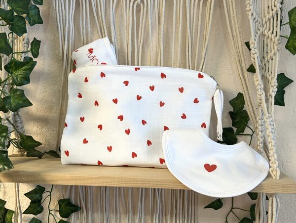 Baby trousse gaze de coton imprimé cœurs